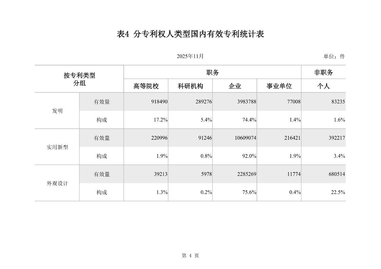 附:2025年11月国家知识产权局审查注册登记统计月报