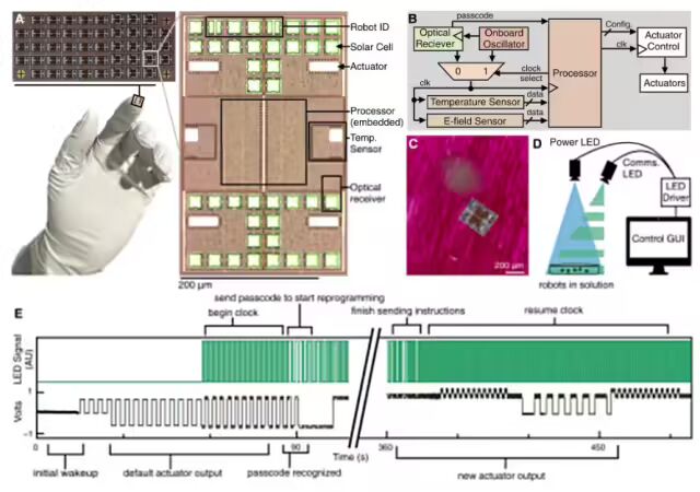 这种机器人长约 300 微米、宽 200 微米,厚度仅为 50 微米,比盐粒还要小,内置计算机、电机和传感器,每颗成本仅 1 美分,有望为构建在人体内部署、执行各种医疗任务的微型机器人奠定基础。