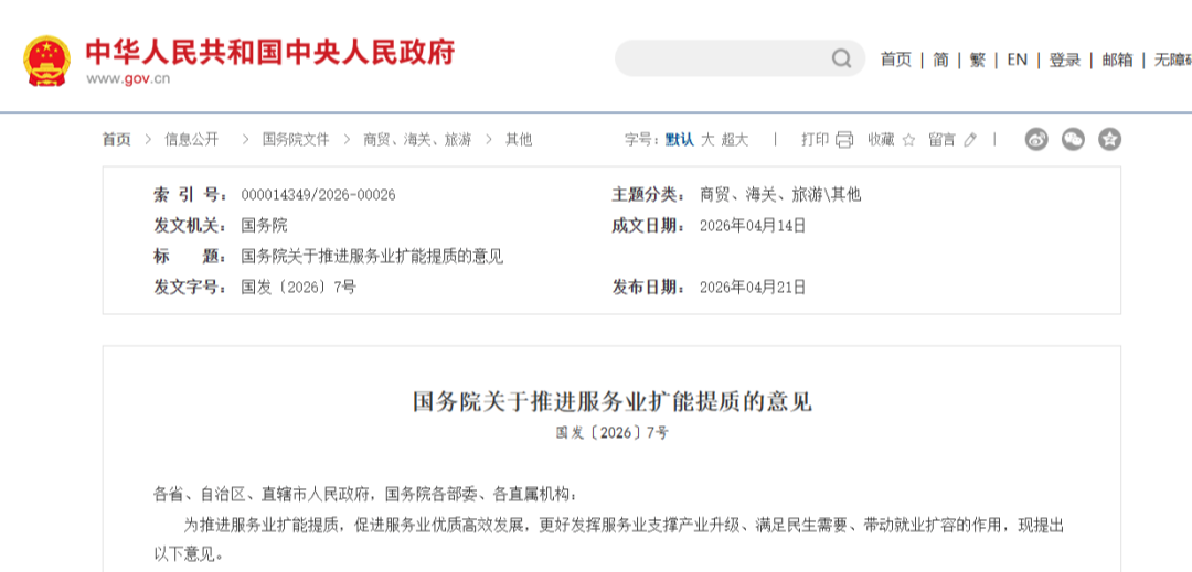 国务院日前印发《关于推进服务业扩能提质的意见》。意见明确,到2030年,服务业总规模迈上100万亿元台阶,培育更多“中国服务”品牌,服务业全球竞争力、影响力明显增强,人民群众获得感持续提升。